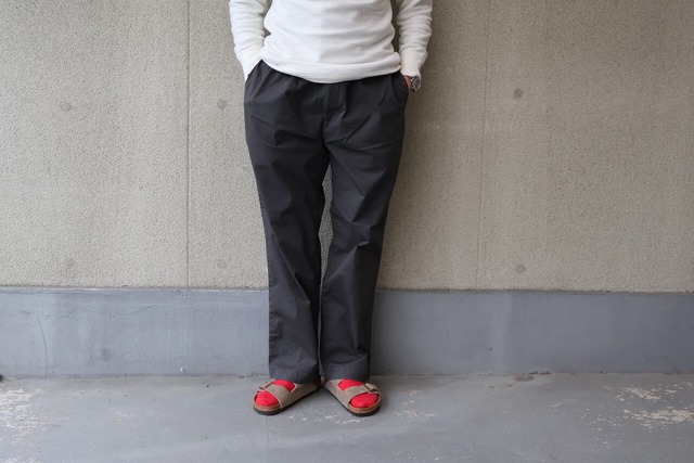 FOB FACTORY / ST TWILL EASY PANTS 3シーズン使えるデイリーウェアとして最適なコットンツイルにストレッチ性を持たせたイージーパンツです ピグメントダイの素材に加工を加え、少しアタリを付けることでマットでこなれた雰囲気に仕上げています 肌さわりも良く、ウエストはゴム仕様となっており非常に履きやすいパンツに仕上がっています コットン95% ポリウレタン5% カラー CHARCOAL 日本製 size ウエスト 股上 股下 わたり 裾幅 (2)Msize 76~80cm 32cm 76cm 36cm 23cm (3)Lsize 78~86cm 32cm 76cm 37cm 24cm (4)LLsize 84~90cm 33cm 76cm 39cm 25cm モデル177cm Lサイズ着用 採寸による多少の誤差はご了承下さい。