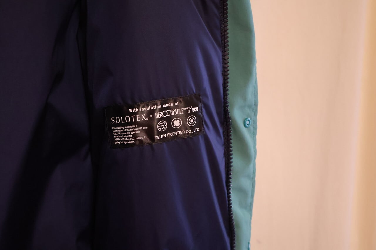 軽くて保温性抜群のハイブリッド中綿「AERO CUPSULE」使用