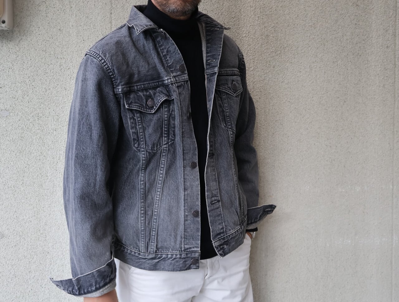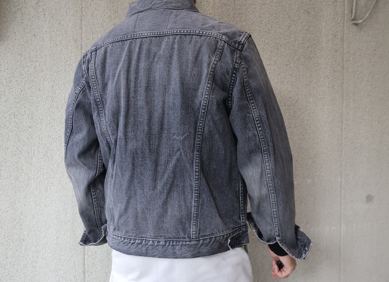 ブルーデニムと違い、ブラックならではの全体的にフェードした自然な色合いが特徴的