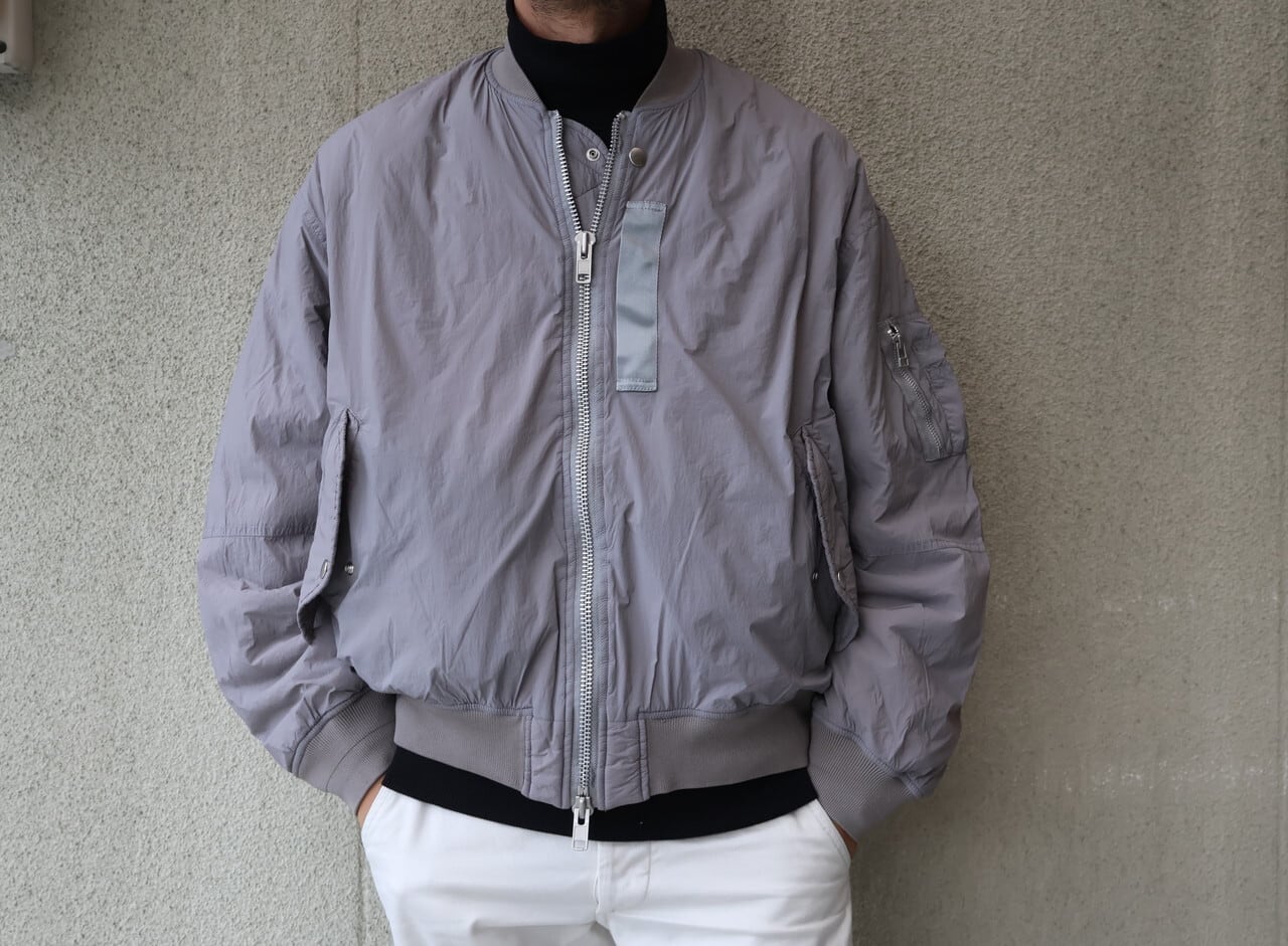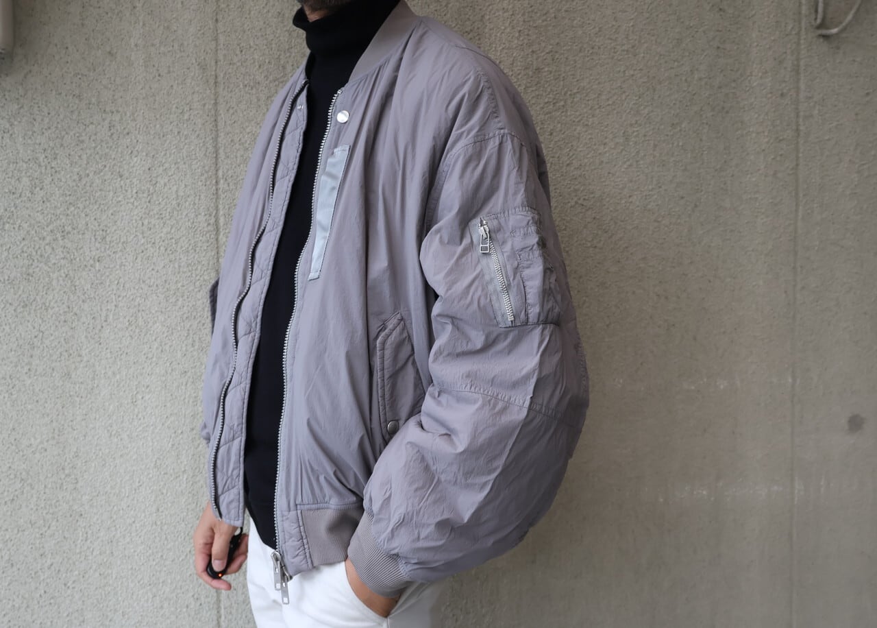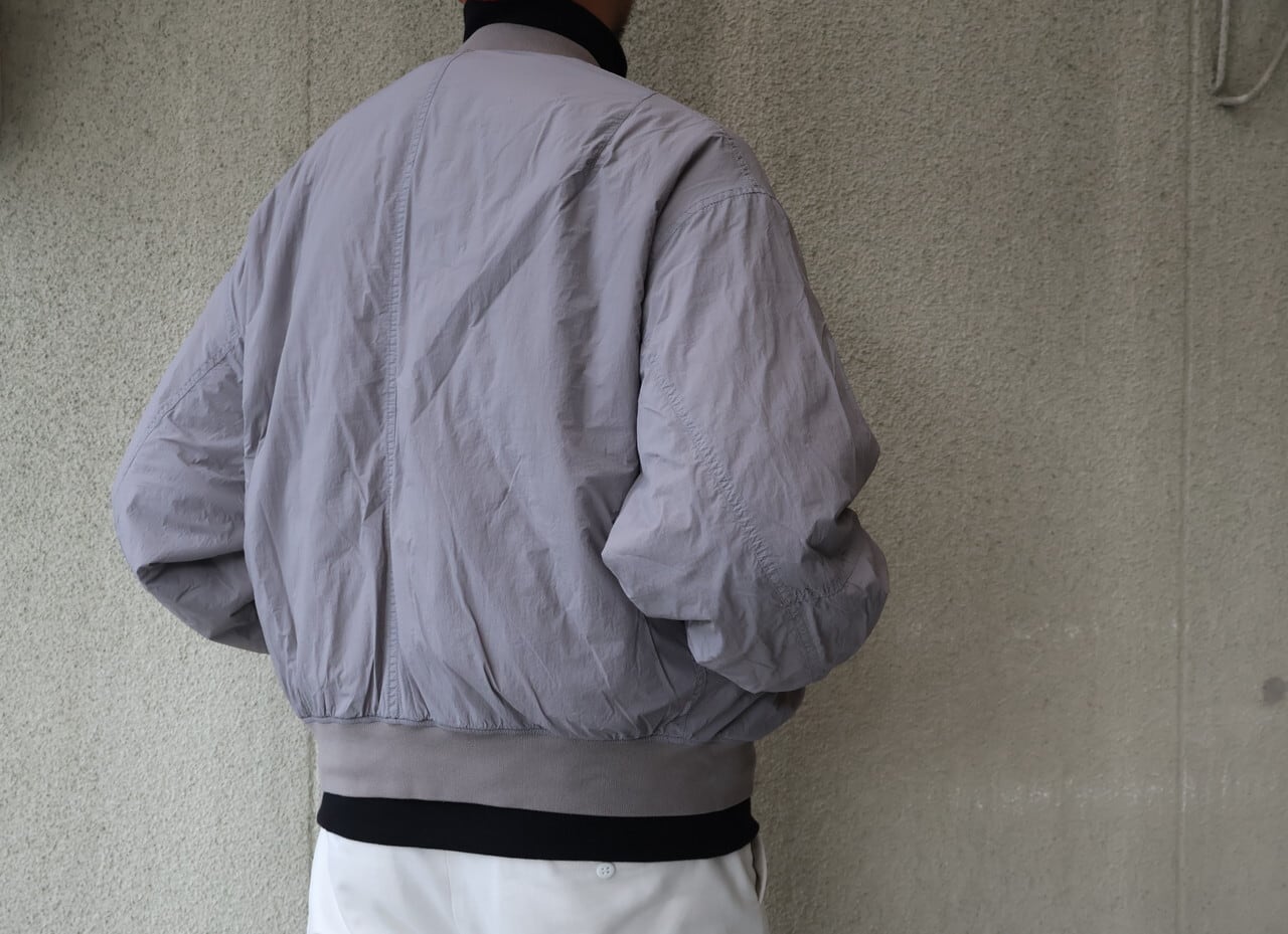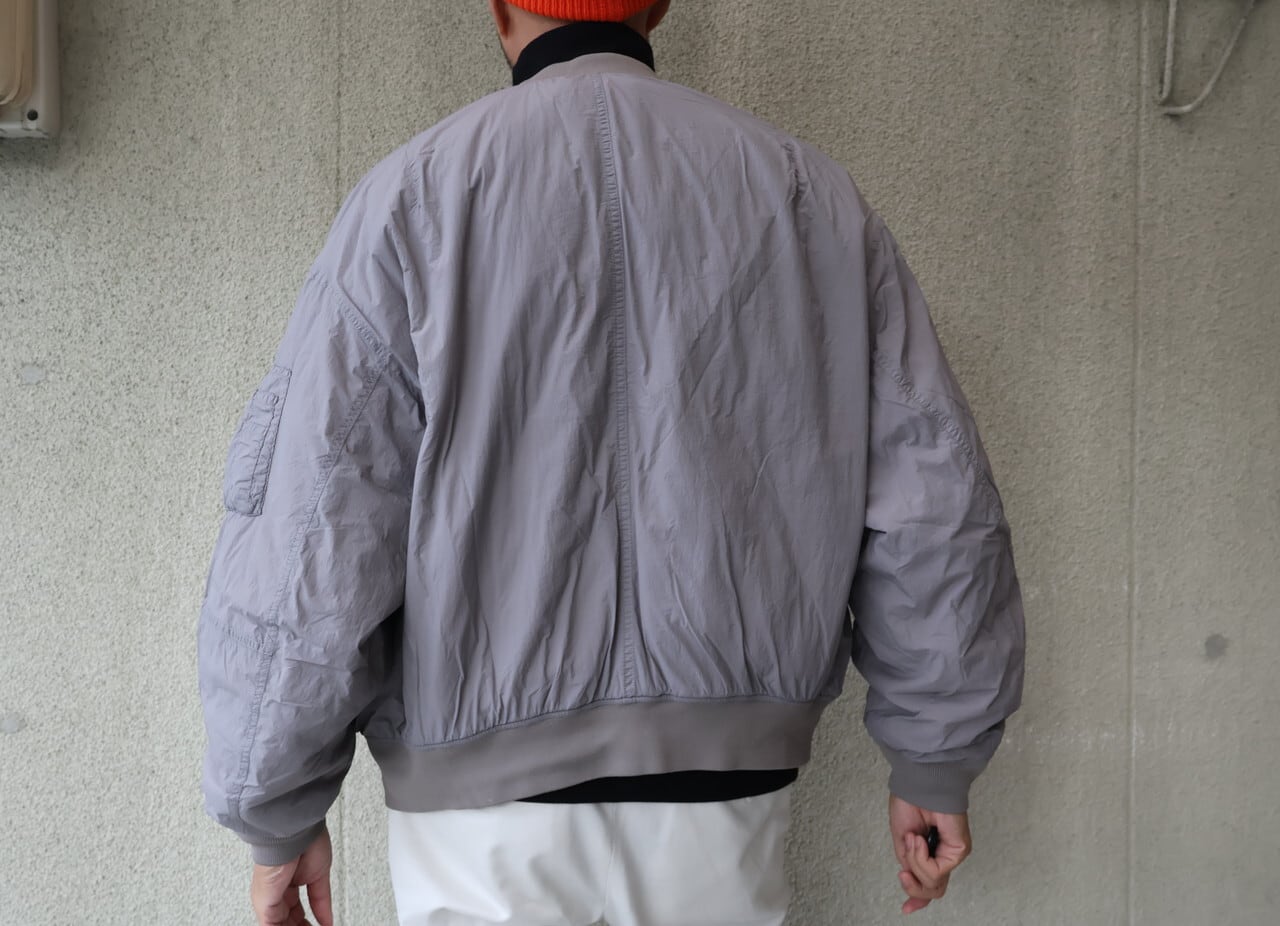 特殊な酸性染料で製品染めをした、ワイドシルエットのMA-1になります