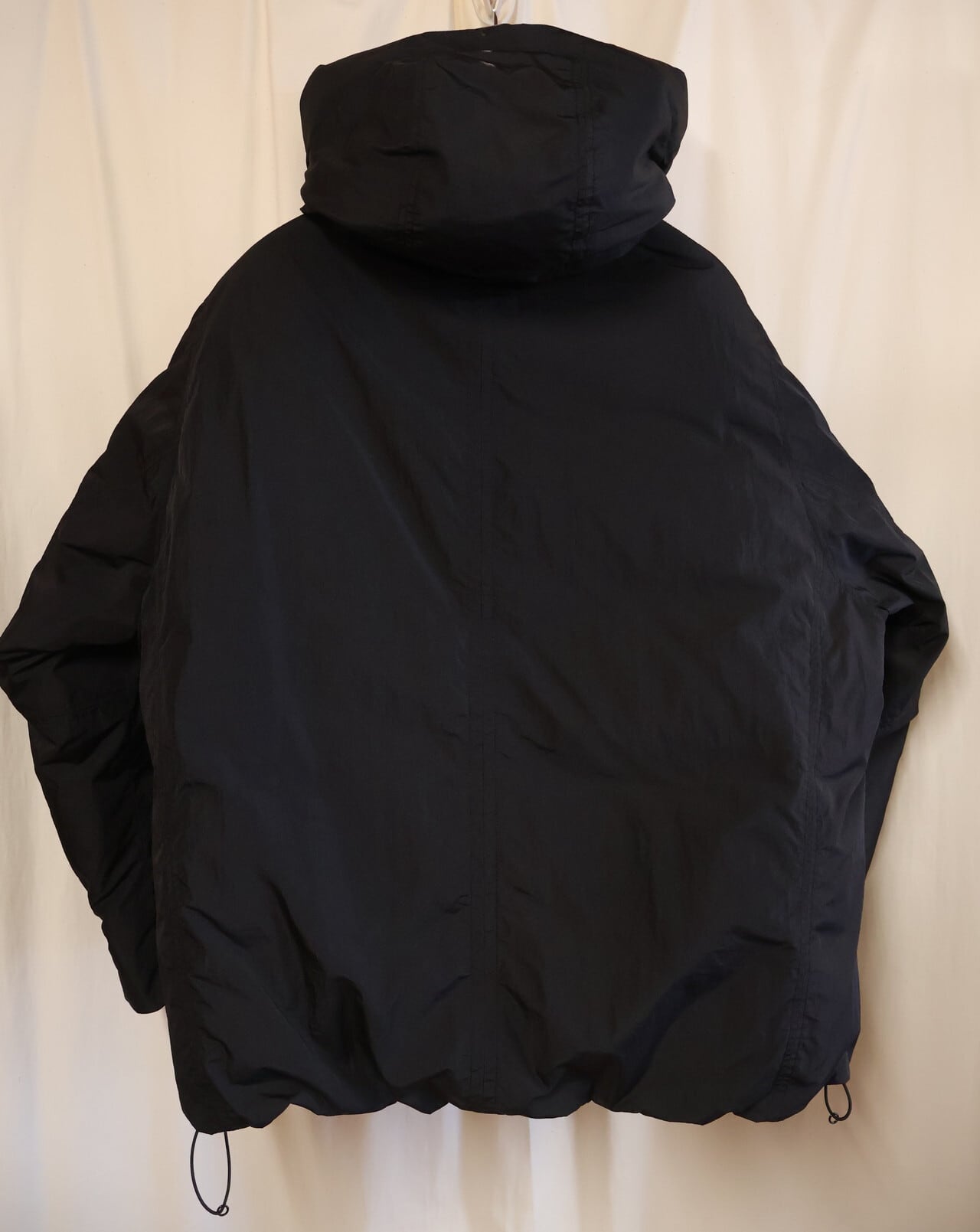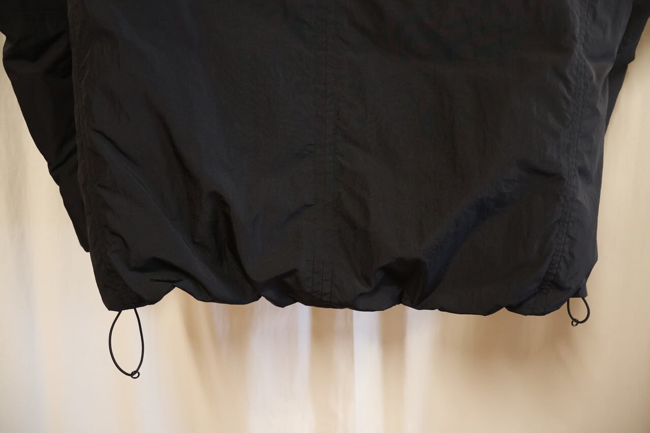 フードと裾にはゴム紐が通ってますので、シーンに合わせて絞れます