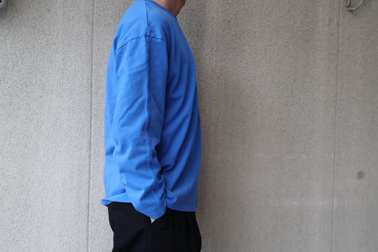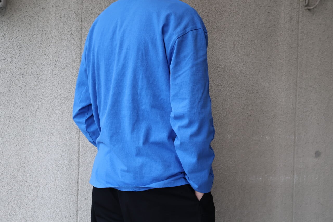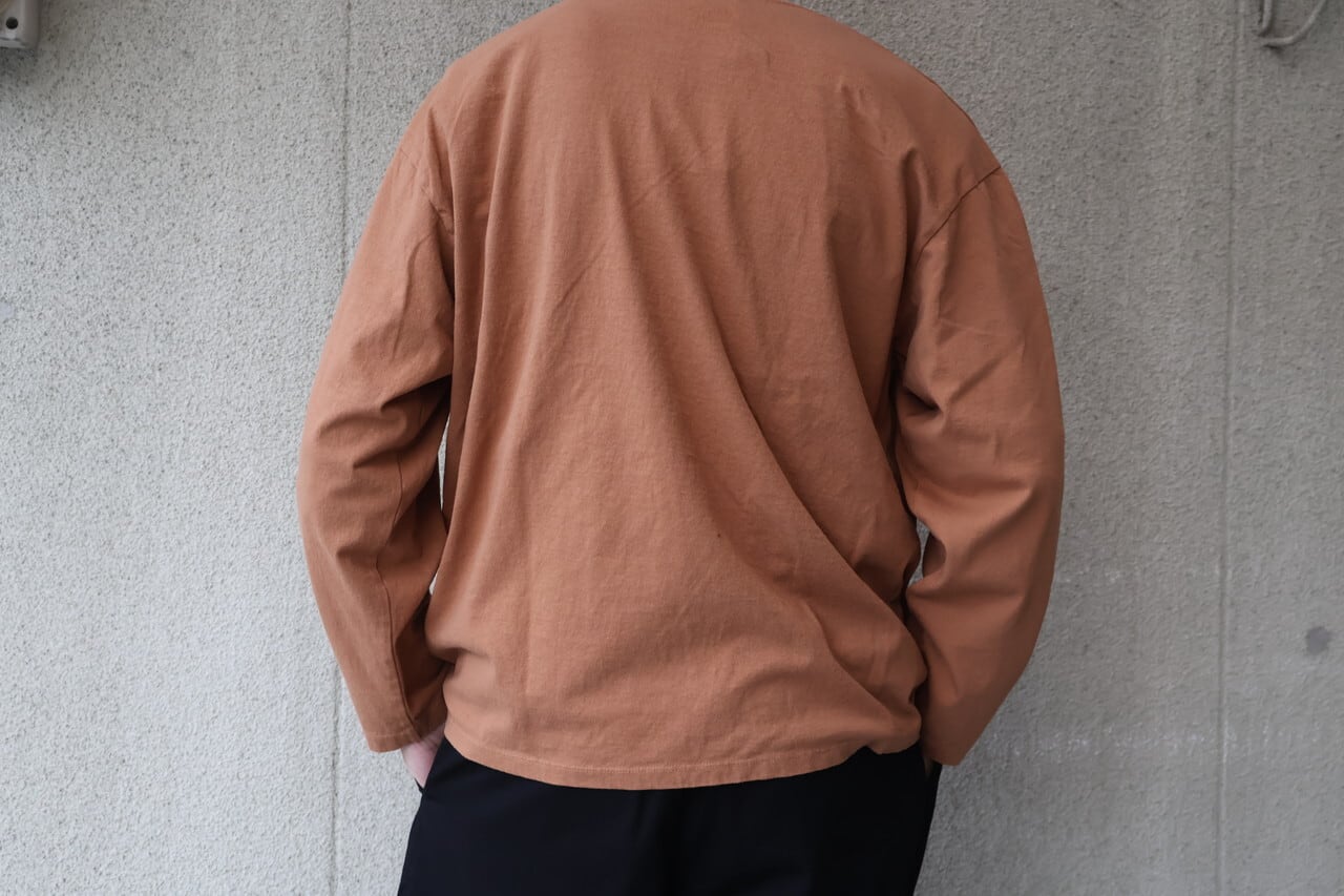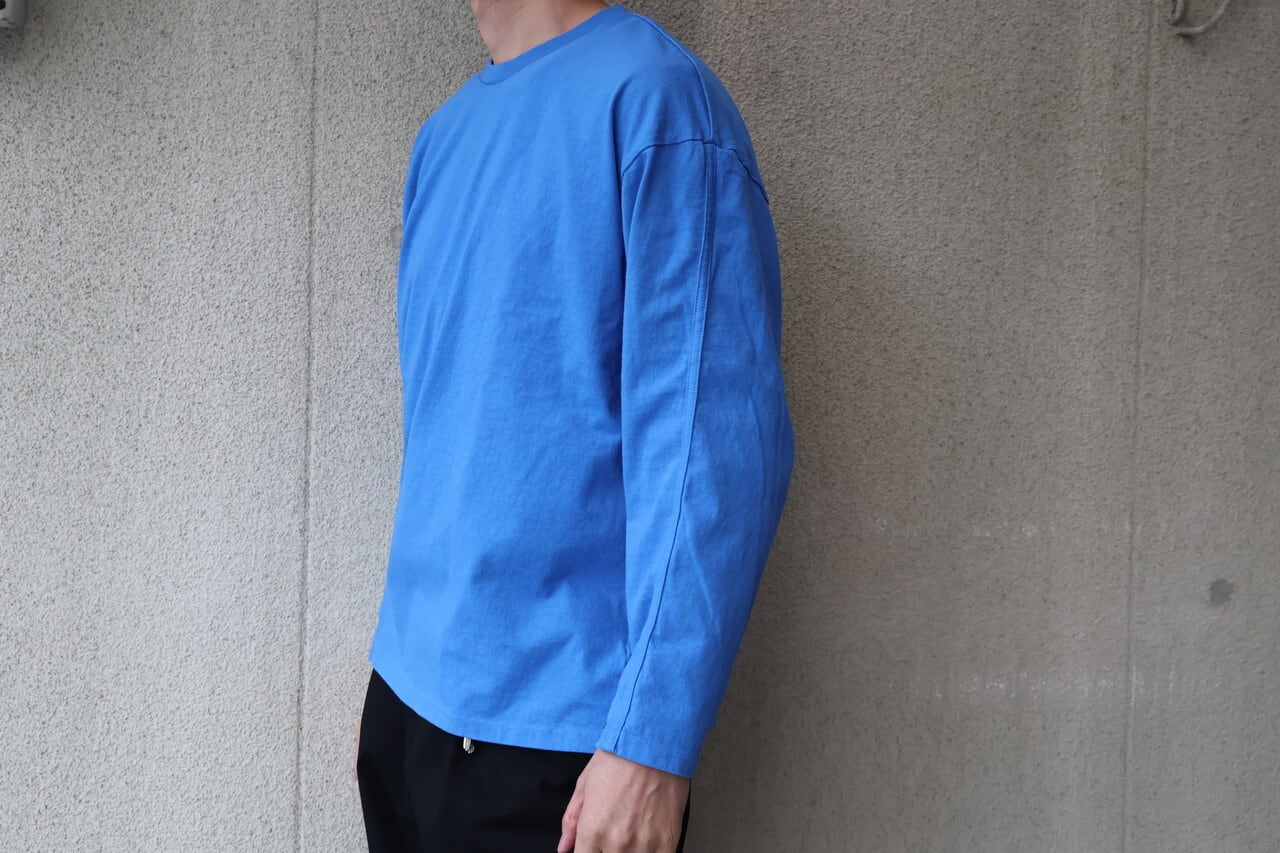 定番18番手糸のアメリカコットンを使用した、袖切り替えにタコバインダー始末を施したロンTです