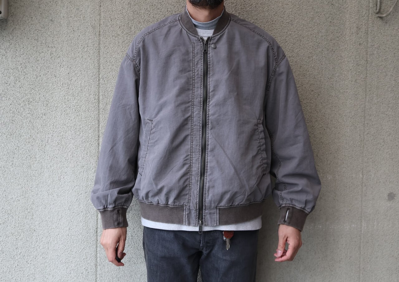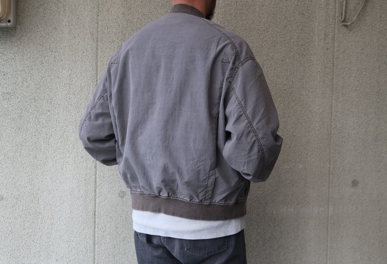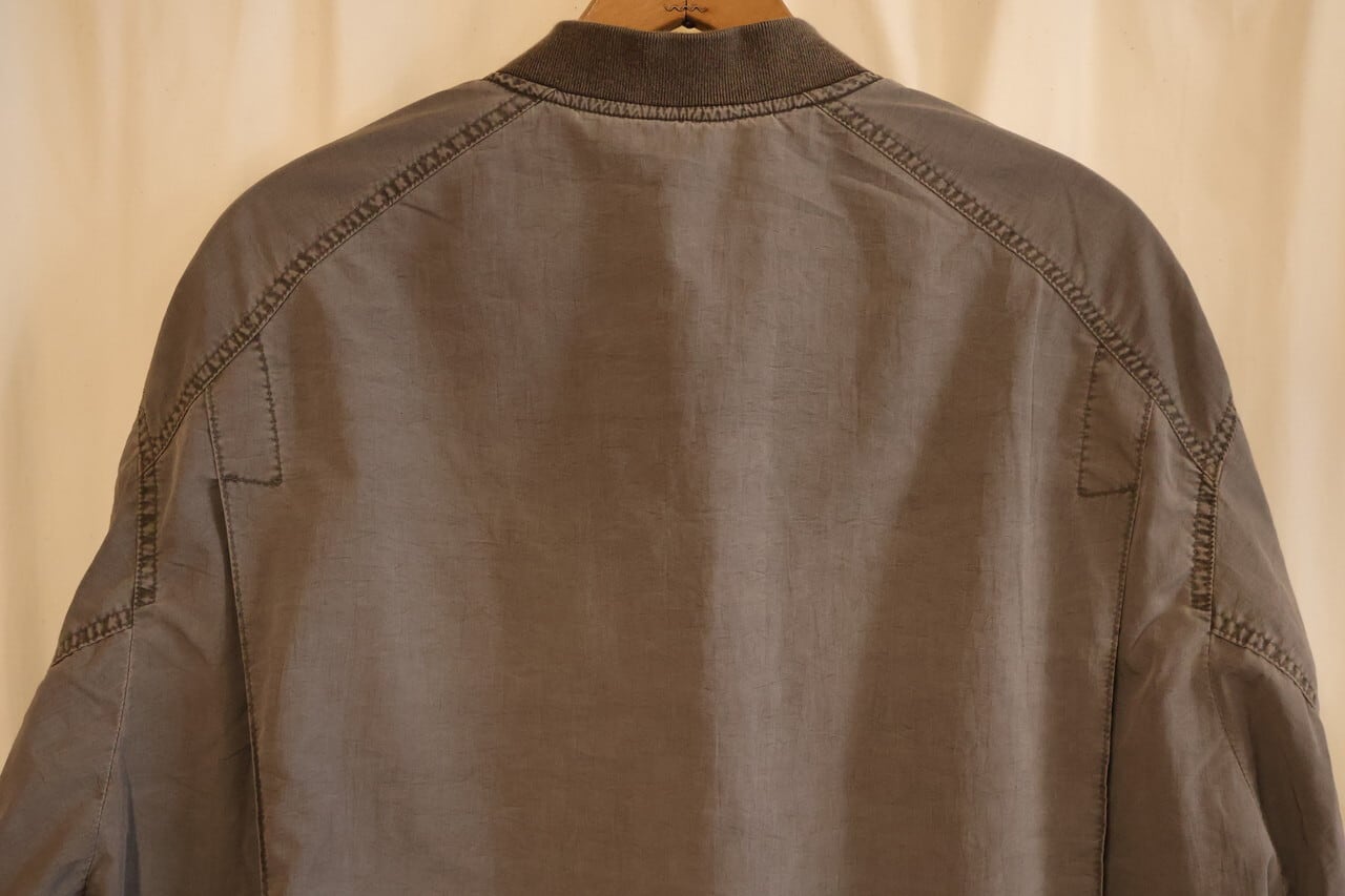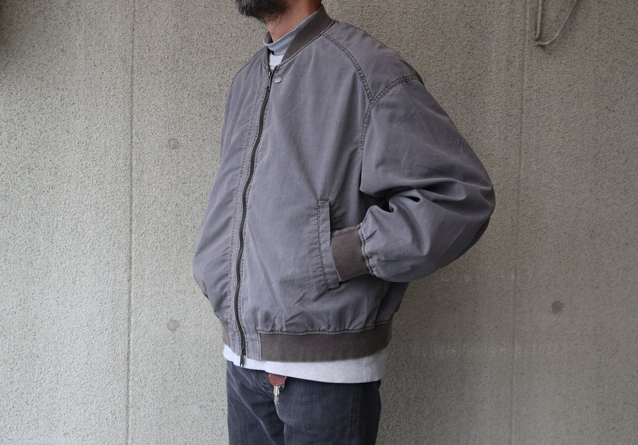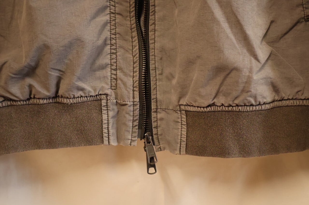 高密度ナイロンを特殊な酸性染料で製品染めを施した、ボンバージャケット