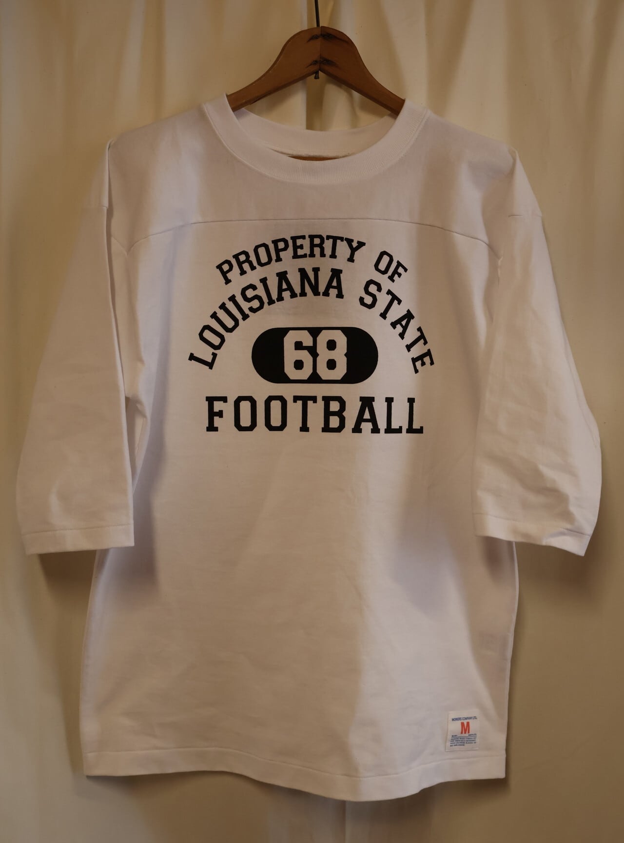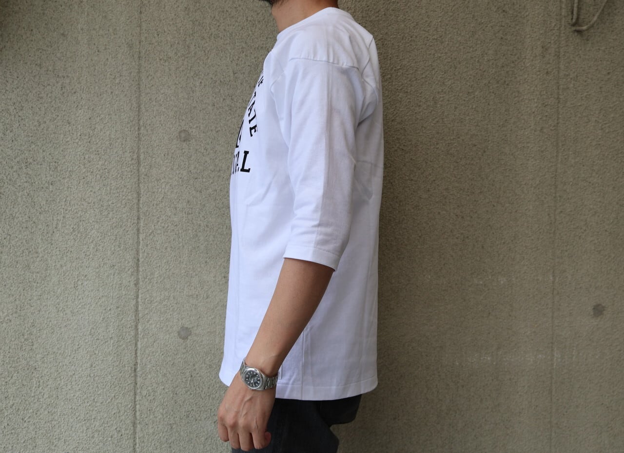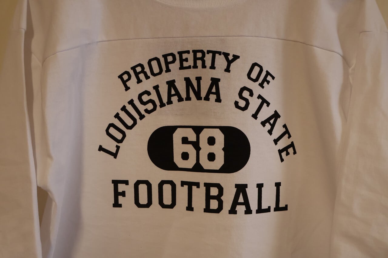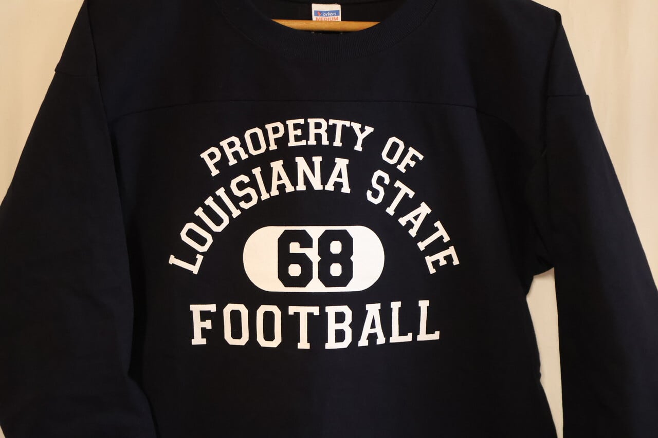 16番単糸天竺の7オンス生地を使ったフットボールプリントTシャツ