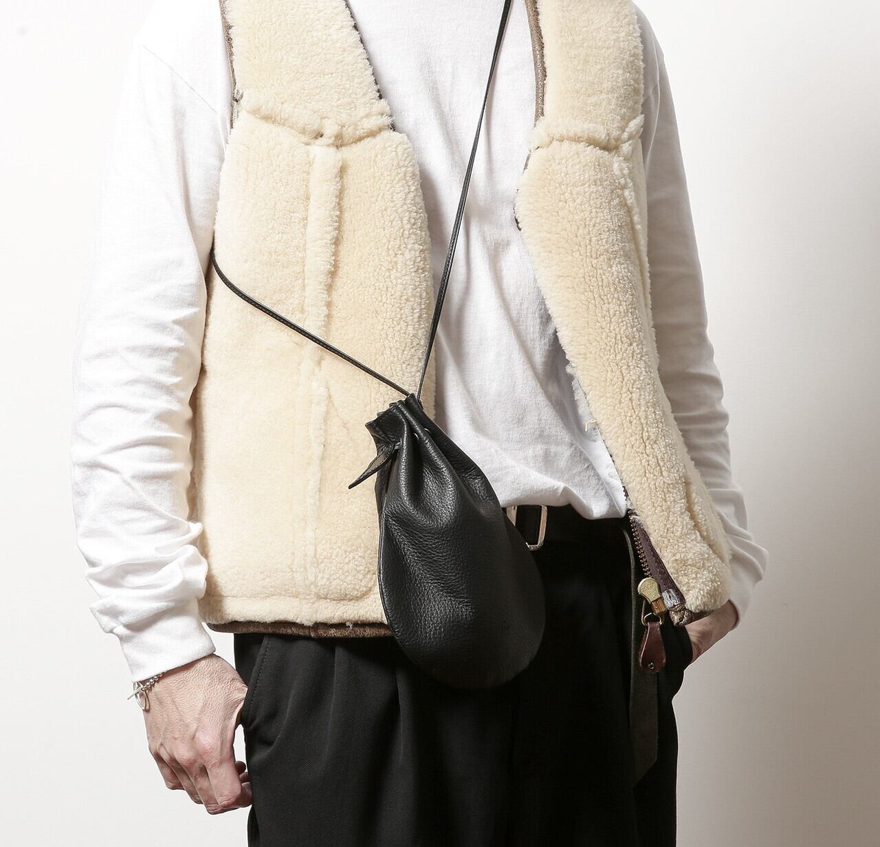 薄く柔らかなシュリンクレザーを使用したショルダーポーチ
