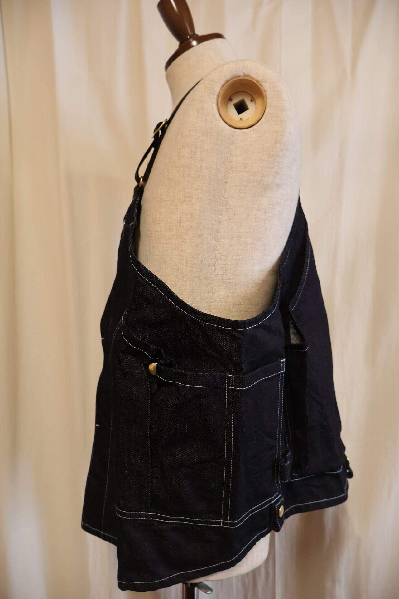 濃紺のインディゴで染めたムラ感のある7番手のタテ糸を使用し、ヴィンテージライクな表情が特徴で経年変化も楽しめます