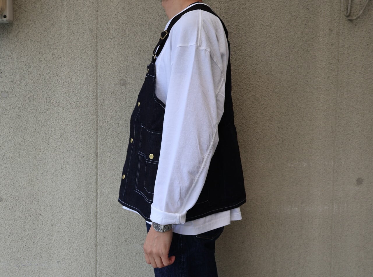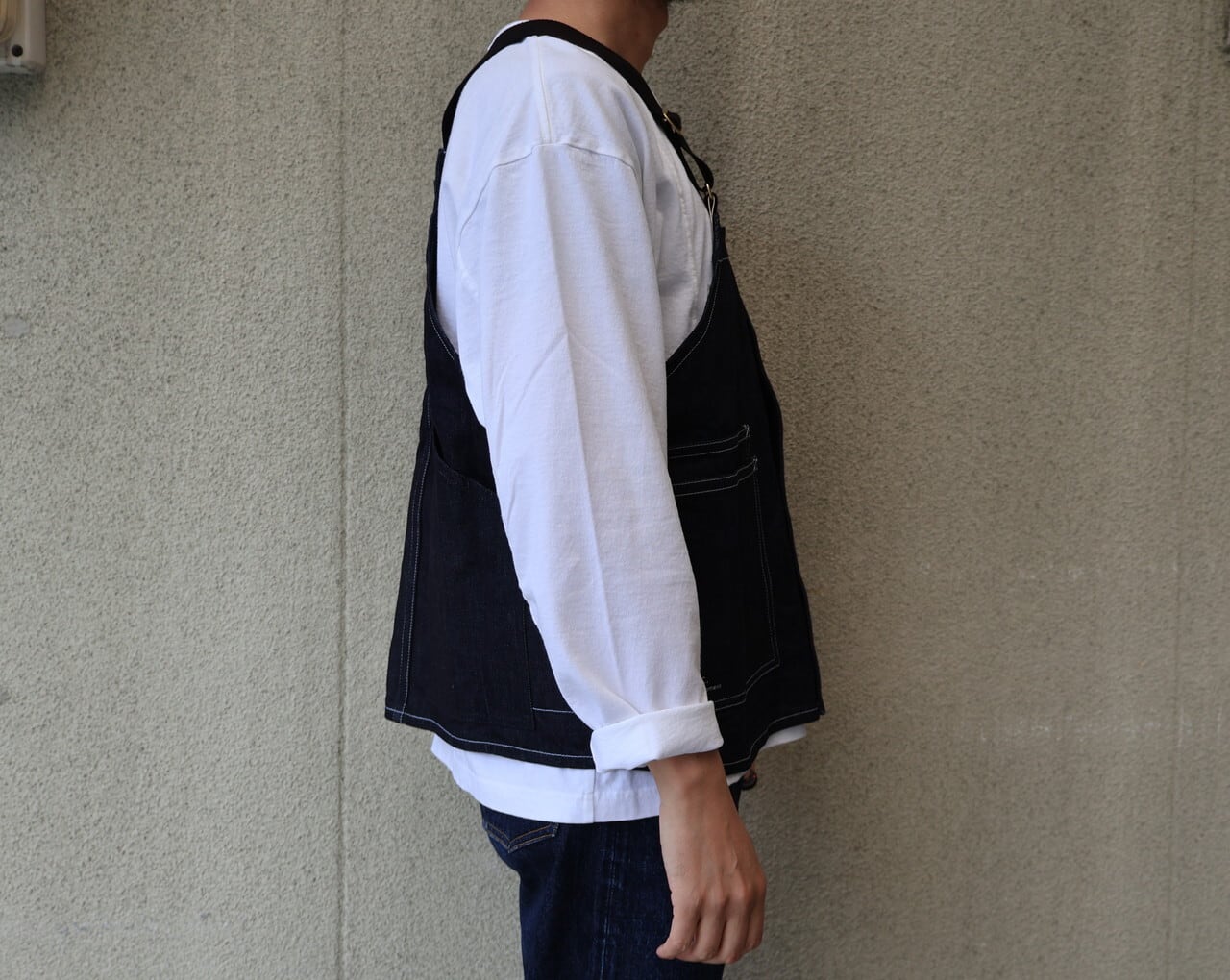 濃紺のインディゴで染めたムラ感のある7番手のタテ糸を使用し、ヴィンテージライクな表情が特徴で経年変化も楽しめます製品はワンウォッシュしています