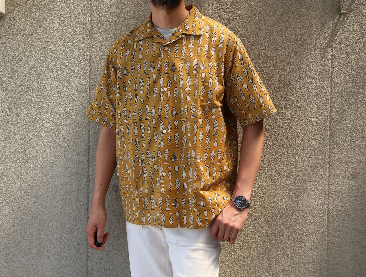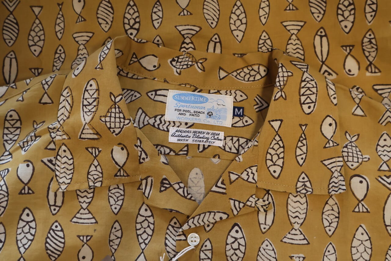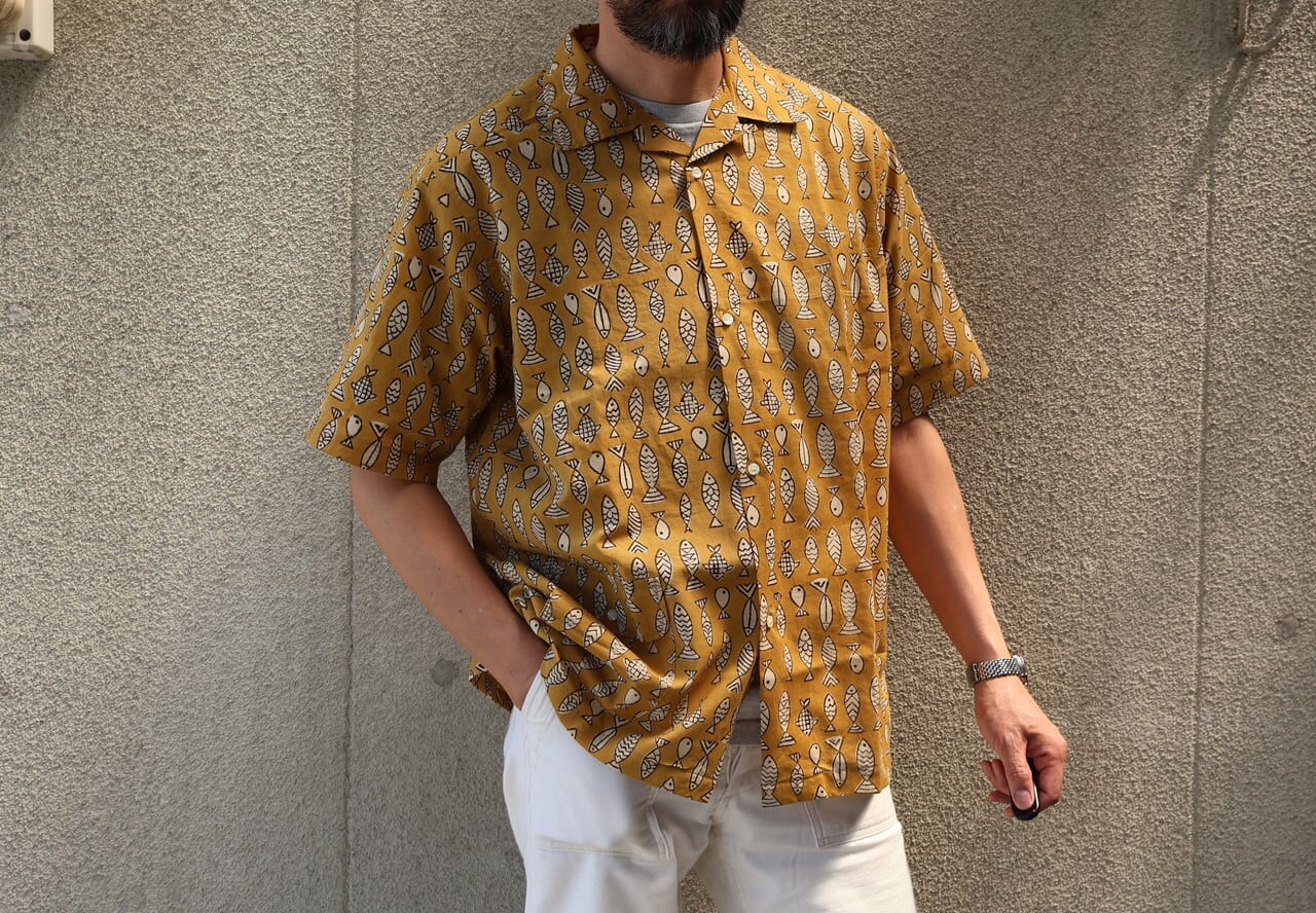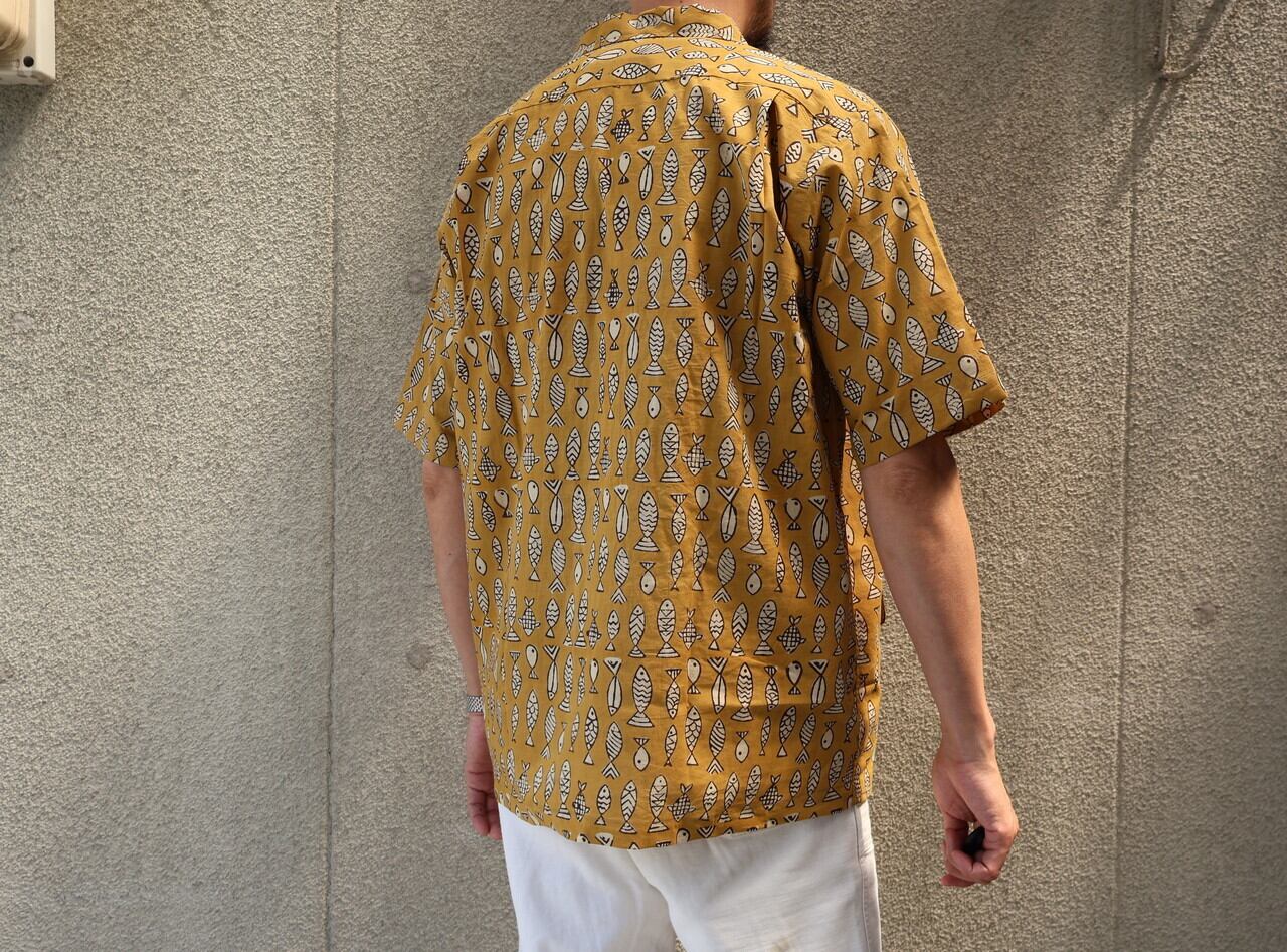 WORKERS / OPEN COLLAR SHIRTS FISH BLOCK PRINT