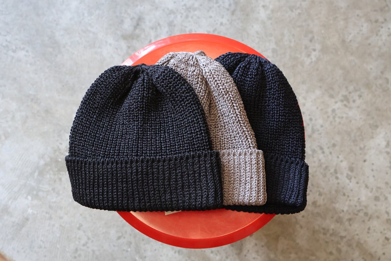 綿糸に麻加工を施した擬麻(ギマ)糸を使用、シャリ感と清涼感のあるコットンニットキャップ